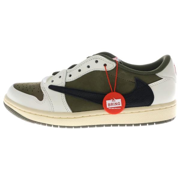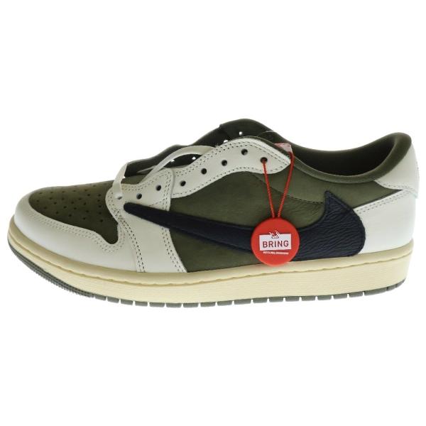 - ナイキ ×トラヴィススコット AIR JORDAN 1 エアジョーダン1 リバースオリーブ ホワイト ローカットスニーカー US10/28cm DM7866-200